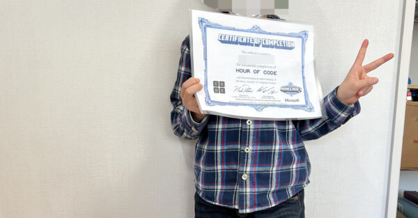 スタッフさんに後から伺ったところ「お友達が修了書をもらったのを見てプログラミング講座の日以外でもやりたいと子どもたちが言うようになりました。」と教えてくれました。