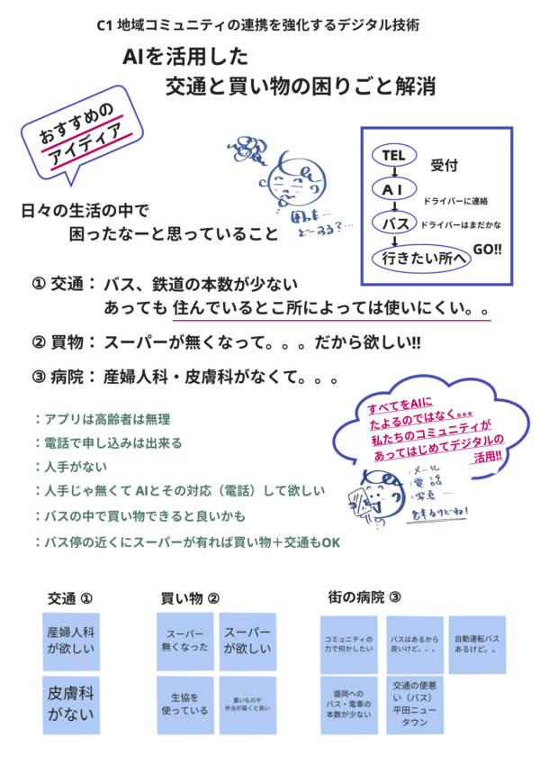 各グループでは、デジタル技術を活用した地域課題解決の具体的なアイデアが生まれました。