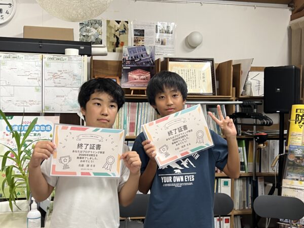 2期生の2人は、毎回の講座を楽しみながら取り組み、全6回を通して大きく成長しました。卒業作品に込められた工夫やアイデアは、“自分たちで考え、つくり出す楽しさ”を全力で表現したもの。