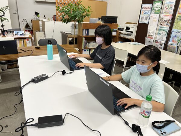 これまで男子が中心だった講座では、初めての女子ペアとなりました。最初はパソコン操作に緊張する様子もありましたが、「やってみたい!」という気持ちが強く、2人で教え合いながら少しずつ慣れていく姿が印象的でした。