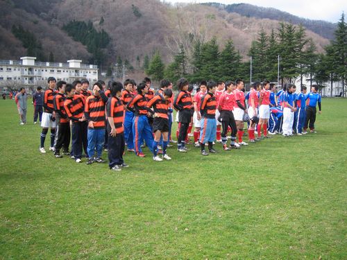 グラウンドには、釜石高校、釜石商工高校のラグビー部員合わせて約50人が参加。