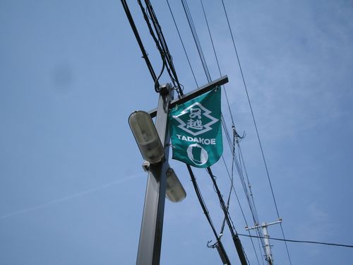 商店街の方々が、只越町の街路灯に旗をくくりつけていました。