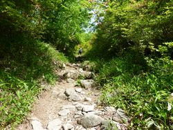 登り始めは結構きつい石がゴロゴロした道が続きます。><