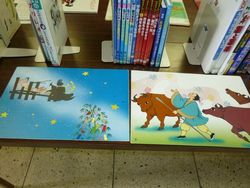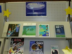展示会場には七夕飾りを始め、星にちなんだ紙芝居や本が並んでおりました。