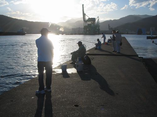 堤防には数人のギャラリーと沢山の釣り人の姿。
