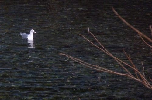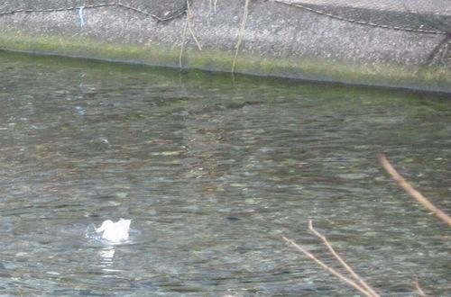 かもめが浮かびながら時折思いっきり川に頭を沈めてエサを探しています。