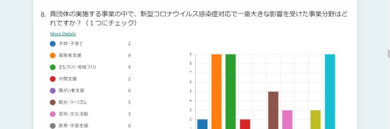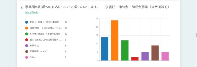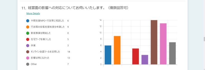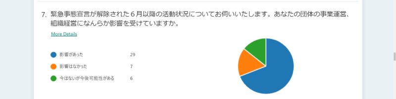 4月に行った第一弾アンケートの結果からはNPOの皆さんが、事業のみならず組織経営にも大きな影響が有る事が明らかとなりました。