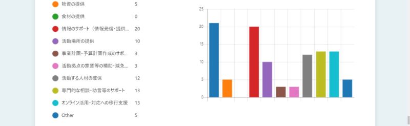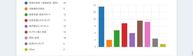 この結果を受け、前回同様に行政、関係機関にコンタクトを取りNPOが必要とする支援や、有用な情報(補助金や支援制度など)についての発信の方法などを協議します。