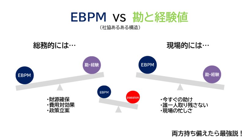 そのためにデータを活用し、数値化できる部分をきちんと分析したうえで、EBPM(証拠に基づく政策立案)的な手法で課題を解決することが必要になるという趣旨のお話しが続きます。