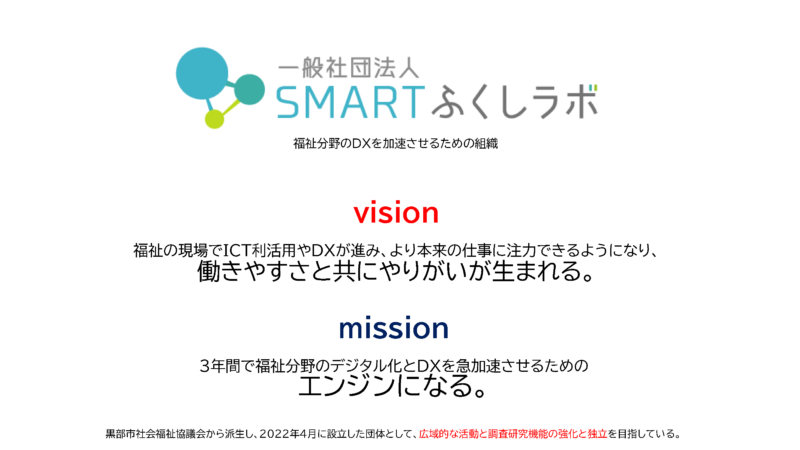 小柴さんは富山県の黒部市社会福祉協議会の職員であると共に、2022年4月に設立された一般社団法人SMARTふくしラボの主要メンバーでもあります。