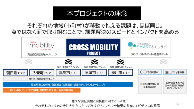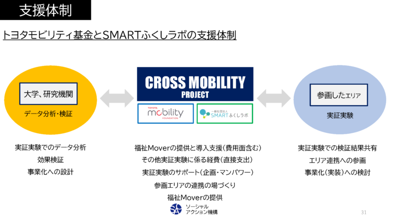 そこで、この取り組みはSMARTふくしラボとトヨタモビリティ基金が事業主体となって実証実験を進めていくこととした。