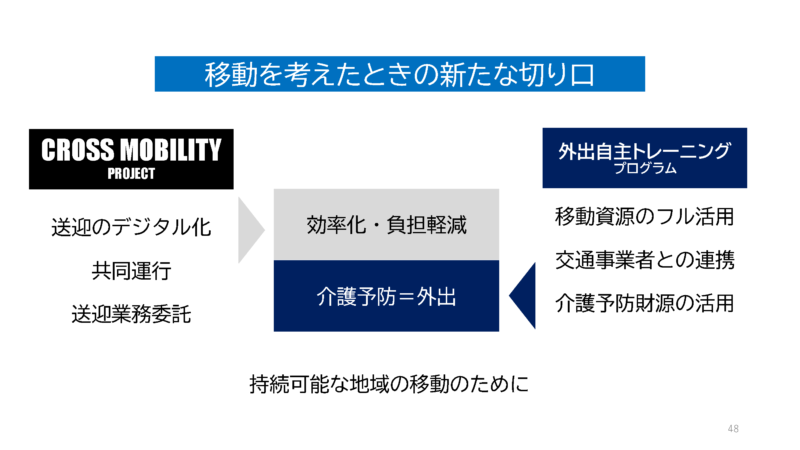 これが、福祉の分野を超えて交通分野との連携をして、いろんな地域の課題をハイブリッドで解決していく。という事例の共有です。