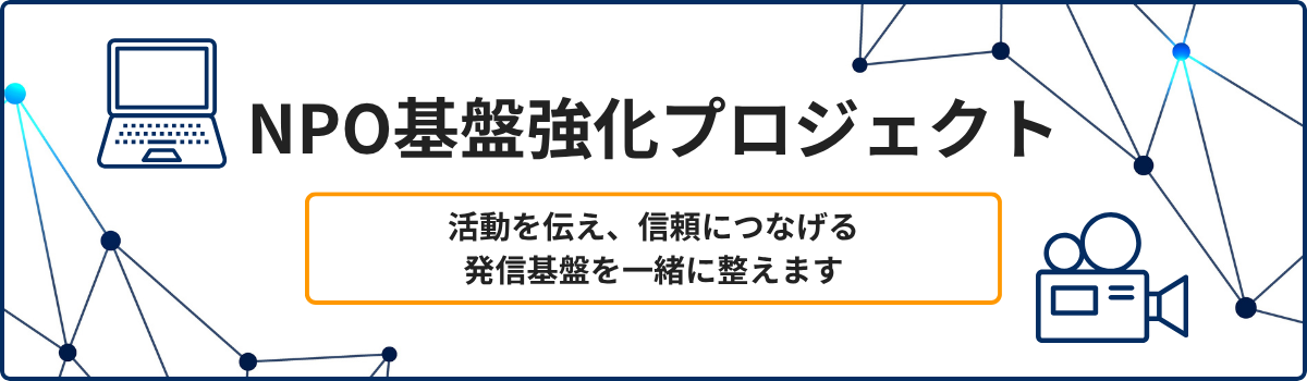 本ページでは、NPO基盤強化プロジェクトとしてWebサイト整備や情報発信、動画活用などを中心にご案内しています。
